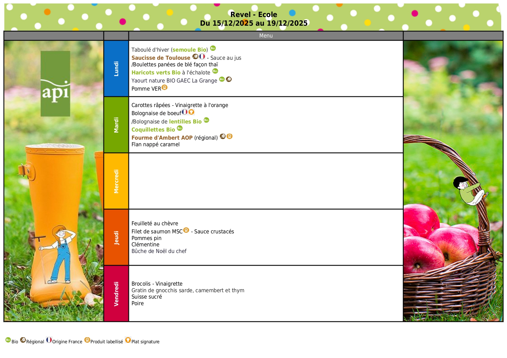 Les menus de la cantine