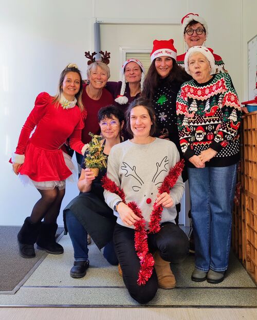 L’équipe du périscolaire, version pull de Noël et bonne humeur